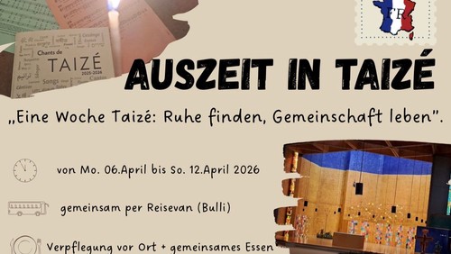 Erlebe eine Woche Taizé: ein klarer Rhythmus aus Gebet, Gemeinschaft und internationalem Austausch. Zwischen stillen Momenten, inspirierenden Impulsen und gemeinsamen Aufgaben entsteht ein einzigartiger Ort zum Auftanken. Höhepunkte wie das Friedensgebet am Freitag und die Lichtfeier am Samstag machen Taizé zu einer Erfahrung, die Ruhe schenkt, verbindet und neue Kraft weckt.